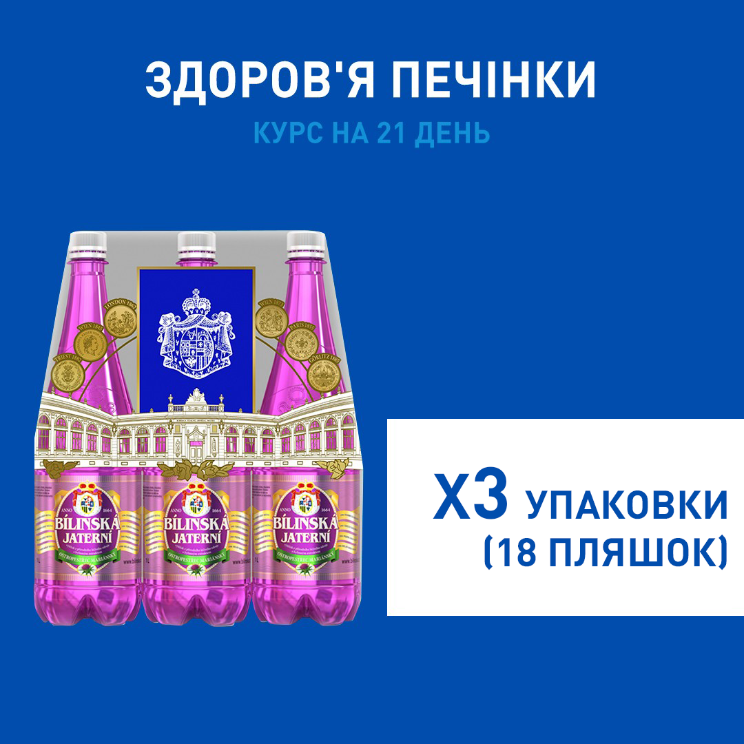 Лечебно-столовая минеральная вода Билинска Киселка, обогащенная экстрактом семян Расторопши пятнистой. Натуральная травяная добавка усиливает и дополняет лечебные свойства минерального источника. “Билинская Ятерни” защищает и восстанавливает клетки печени при гепатитах и токсических поражениях. Устраняет изжогу, тошноту и тяжесть в правом подреберье. Нейтрализует и выводит свободные радикалы. Эффективна при сахарном диабете 2 типа.