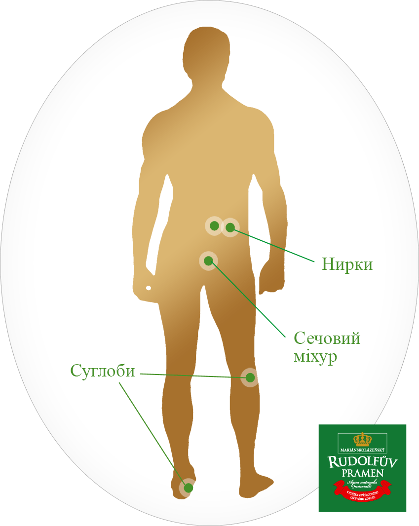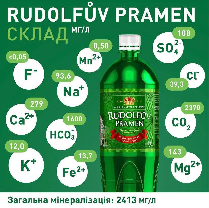 Рудольфув Прамен — лечебно-столовая минеральная вода обладающая выраженным мочегонным действием, повышает рН мочи, уменьшает риск образования в почках оксалатных и уратных камней. Снижает риск развития осложнений при подагре. Укрепляет костную ткань при остеопорозе.